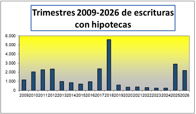 A pesar del crecimiento general de las operaciones, el segmento de las hipotecas mostró un comportamiento dispar. En marzo se formalizaron 834 escrituras con crédito hipotecario, cifra que representa el 14,9% del total de las compraventas. Sin embargo, este dato implica una baja del 15,9% si se lo compara con el mismo mes del año anterior.